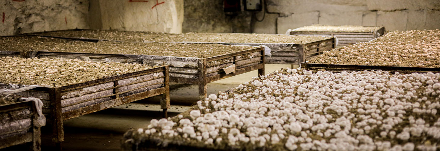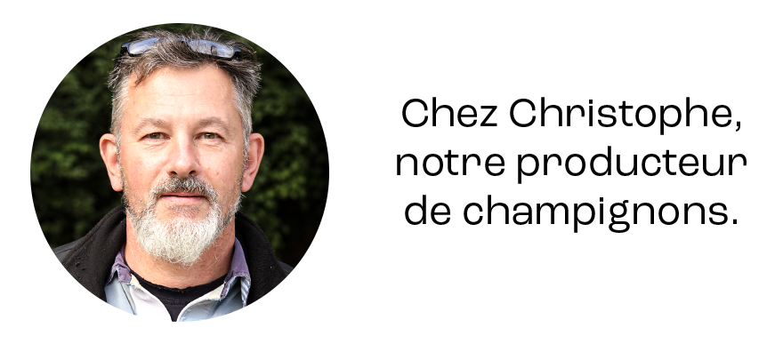 Christophe récupère du fumier des écuries de Chantilly. Mélangé à du mycélium, il sert de substrat (terreau) aux champignons. Une fois qu’il ont grandi, bien à l’abri de deux hectares de carrières de calcaire, avec l’ombre et l’humidité dont ils ont besoin, Christophe et son équipe les ramassent et recyclent le substrat restant dans les champs d’agriculteurs voisins.